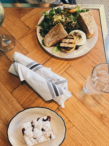 Having eaten lunch before, I decided to just order desert. I asked for their jam bar while my mom enjoyed a glass of wine with her seasonal burrata salad. The food was delicious to say the least. We especially enjoyed playing with the burrata cheese atop of her salad, giggling at its unique and foreign texture.